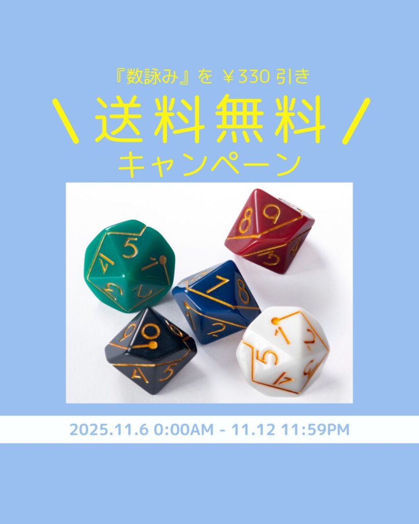 (2025年)11/6(木)〜11/12(水)の1週間限定で、当店BASEにて『数詠み』をご購入の方が利用できる、送料分330円割引クーポンを発行しました!